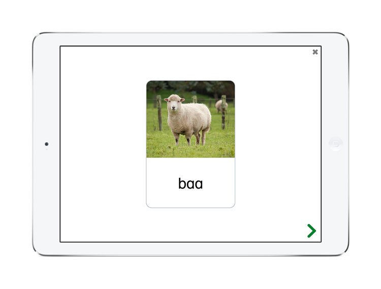 - Clear color picture prompt 'cards' - laminated cards in the print edition, similar 'cards' on screen in the apps
